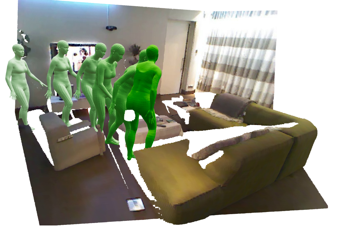 3D human motion and scene reconstruction from RGB videos. Improves spatial grounding by optimizing human mesh against estimated human point map.